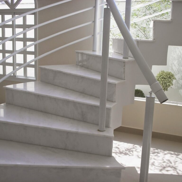 Degraus em pedra natural, seguros, resistentes e com excelente acabamento estético.